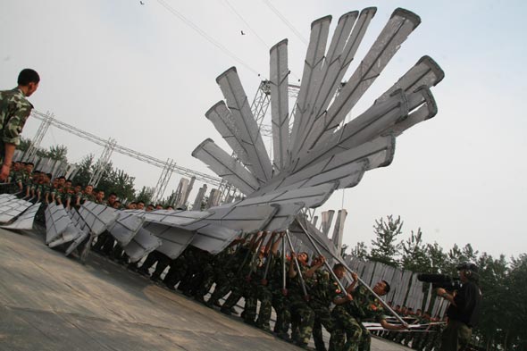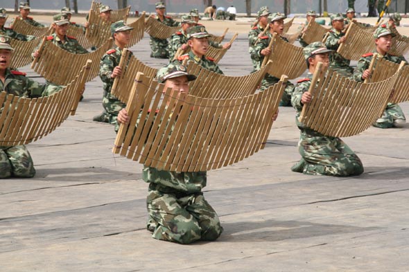 “我們前四個(gè)八拍動(dòng)作取名為“禮之用,和為貴”,一開場(chǎng)就要把古代文人的氣質(zhì)淋漓盡致地刻畫出來(lái),要高傲,要自然,要放松,所有軍人姿態(tài)都要改過(guò)來(lái)……”第一天,導(dǎo)演們的一串“連環(huán)炮”就讓激情昂揚(yáng)的參演官兵傻了眼。