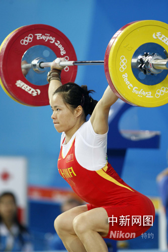 中新網(wǎng)8月11日電 在北京奧運會舉重女子58公斤級決賽中,衛(wèi)冕冠軍中國選手陳艷青輕松奪得金牌,并打破挺舉、總成績奧運會紀錄。她的成績是抓舉106公斤,挺舉138公斤,總成績?yōu)?44公斤。