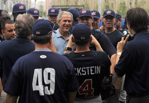 8月11日,美國總統(tǒng)布什現身五棵松棒球場,親自上陣秀球技,并與美國棒球隊運動員交談并合影留念。從8月8日,布什相繼來到“鳥巢”觀看奧運開幕式,“水立方”觀看游泳比賽,五棵松籃球館觀看籃球比賽,可稱得上是美國最大牌的超級體育迷。