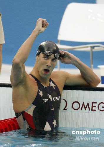8月12日,菲爾普斯在北京奧運(yùn)會(huì)男子200米自由泳比賽中,以1分42秒96的成績(jī)刷新他自己創(chuàng)造的1分43秒86的世界紀(jì)錄獲得金牌。這也是他在北京奧運(yùn)會(huì)上奪得的第3塊金牌。 中新社發(fā) 杜洋 攝