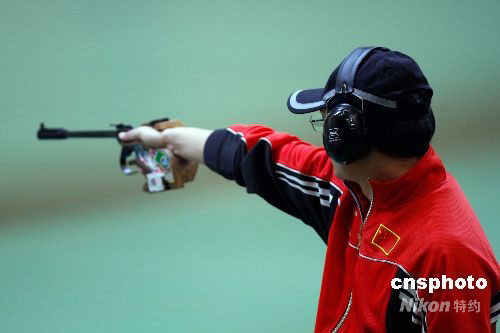 8月12日,在北京奧運男子50米手槍決賽中,韓國選手以660.4環(huán)的總成績獲得金牌,中國選手譚宗亮在韓國選手失誤的情況下,未能把握住機會,以659.5環(huán)的總成績獲銅牌。中新社發(fā) 盛佳鵬 攝