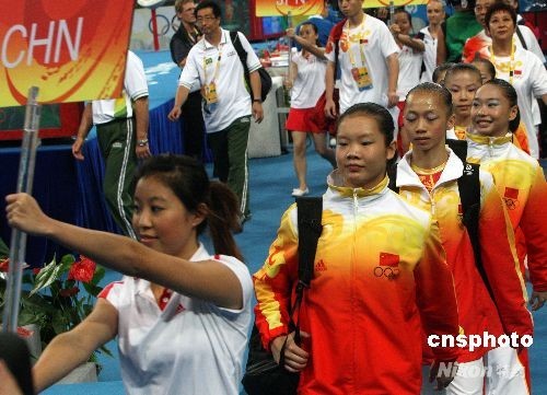 圖:中國隊向女子體操團體決賽金牌沖擊