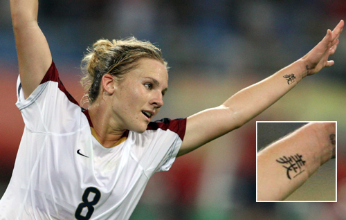 圖:美國(guó)奧運(yùn)女足選手的漢字紋身