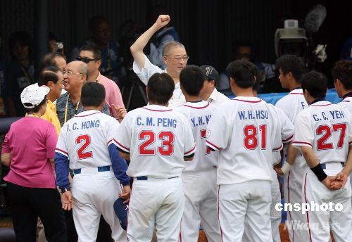 8月13日,中華臺北棒球隊在北京奧運會棒球首場比賽中以5:0戰(zhàn)勝荷蘭隊。中國國民黨主席吳伯雄、親民黨主席宋楚瑜、國民黨秘書長吳敦義等,賽后慰問球員。 中新社發(fā) 武仲林 攝