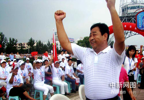中新網(wǎng)新泰8月13日電(記者 胡洪林 張璐 通訊員 褚成東)在今天下午第29屆奧運(yùn)會(huì)男子雙人3米跳板決賽過程中,遠(yuǎn)在家鄉(xiāng)的王峰父母一直緊張地在山東省新泰市中心電視塔廣場(chǎng)透過大屏幕觀看兒子的比賽。當(dāng)王峰和秦凱雙人組合獲得金牌一霎那,王峰52歲的父親王道軍激動(dòng)地從座椅上站了起來,揮舞雙拳高聲為王峰加油,為北京加油,為奧運(yùn)加油。