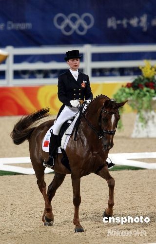 八月十三日晚,中國選手劉麗娜在香港沙田奧運馬術主賽場輕駕坐騎優(yōu)雅上場,這是中國選手首次參賽奧運會馬術項目。當日,奧運馬術比賽進行盛裝舞步團體賽和個人資格賽(大獎賽科目)進行首日賽事。中新社發(fā) 洪少葵 攝