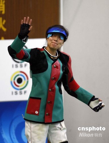 8月14日,在北京奧運(yùn)射擊項(xiàng)目女子50米步槍3×20比賽中,中國選手杜麗奪得金牌。中新社發(fā) 盛佳鵬 攝