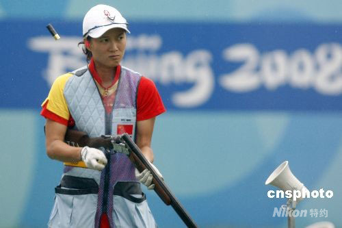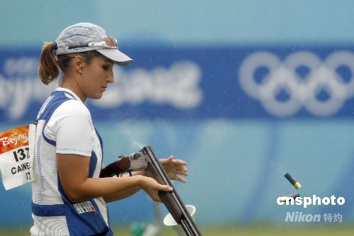 8月14日下午,北京奧運(yùn)會(huì)女子飛碟雙向決賽在北京射擊場飛碟靶場舉行,世界杯總決賽冠軍中國選手魏寧無緣三甲名列第六。意大利選手基婭拉-卡伊內(nèi)羅通過單發(fā)決賽擊敗美國選手羅德-金伯莉和德國選手克里斯蒂娜-布林克爾,以93中獲得冠軍。 中新社發(fā) 盛佳鵬 攝