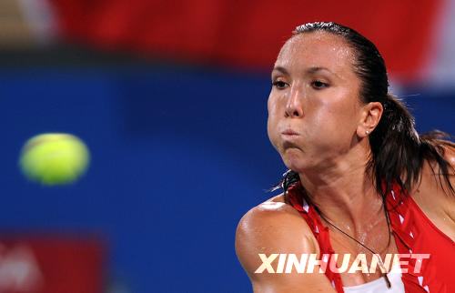 8月13日,塞爾維亞網(wǎng)球選手揚(yáng)科維奇在比賽中回球,像是在用嘴將球吹走。新華社記者鄒崢攝