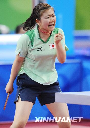 8月14日,在北京奧運(yùn)會(huì)乒乓球女子團(tuán)體項(xiàng)目小組賽第二輪比賽中,日本隊(duì)經(jīng)過艱難苦戰(zhàn)以3比2戰(zhàn)勝西班牙隊(duì)。日本隊(duì)主力球員福原愛兩次上場(chǎng),一勝一負(fù)。新華社記者徐家軍攝