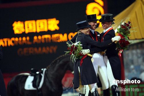 圖:德國隊獲得奧運馬術(shù)盛裝舞步團體賽冠軍