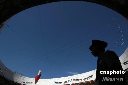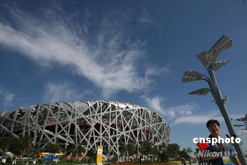 8月15日,北京一掃連日陰霾,展現(xiàn)藍(lán)天白云天氣。當(dāng)日,北京奧運(yùn)會(huì)田徑比賽拉開(kāi)帷幕。中新社發(fā) 武仲林 攝