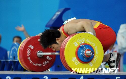 8月15日,中國選手陸永在比賽中。當(dāng)日,陸永在北京奧運會舉重男子85公斤級決賽中以394公斤的總成績獲得金牌,并以總成績打破世界紀錄。新華社記者楊磊攝