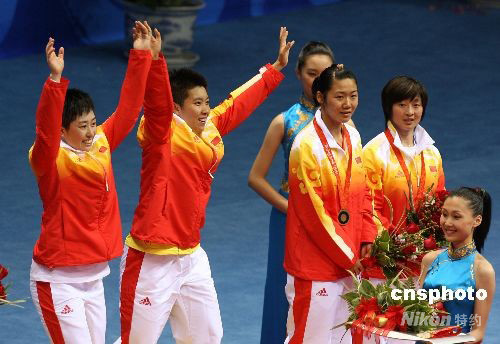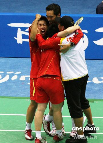 8月15日晚,中國組合杜婧、于洋在北京奧運(yùn)會(huì)羽毛球女子雙打決賽中以2比0戰(zhàn)勝韓國組合李孝貞、李敬元,奪得金牌。 中新社發(fā) 武仲林 攝