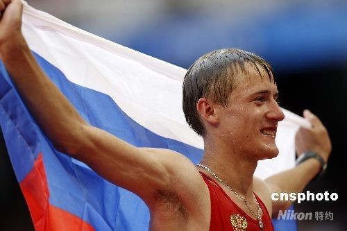 俄羅斯選手瓦列里-博爾欽以1時(shí)19分01獲得該項(xiàng)目金牌。中新社發(fā) 盛佳鵬 攝