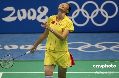 8月16日,中國選手張寧在北京奧運會羽毛球女單決賽中戰(zhàn)勝隊友謝杏芳,奪得冠軍。中新社記者 武仲林 攝