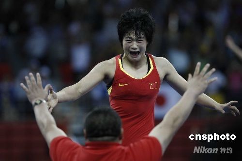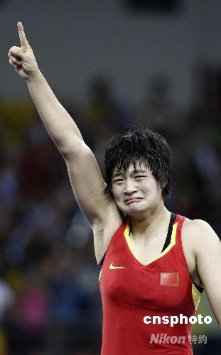 8月17日,北京奧運(yùn)會(huì)女子自由式摔跤72公斤級(jí)決賽中,中國選手王嬌以總分8比3擊敗保加利亞名將茲拉特娃,為中國奪得本屆奧運(yùn)會(huì)第30枚金牌。中新社發(fā) 盛佳鵬 攝