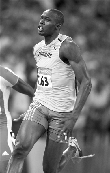 在這場關(guān)于誰是世界上跑的最快的人的較量中,博爾特的強(qiáng)勢,讓他與鮑威爾的雙雄會變成了一枝獨(dú)秀。而在最后20米關(guān)鍵的沖刺階段,博爾特左顧右盼并明顯放慢了腳步,但他仍以9秒69的成績摘得金牌,并打破了自己此前創(chuàng)造的世界紀(jì)錄。不過,那明顯的“放水”讓人感嘆:如果博爾特全力去跑,那世界紀(jì)錄是不是還要明顯提高?然而一張照片為博爾特做出了解釋:在距離終點(diǎn)還有20米左右的位置,博爾特左腳的鞋帶散開,可能他就是在這種情況下才放慢速度完成決賽并最終創(chuàng)造優(yōu)異成績的。