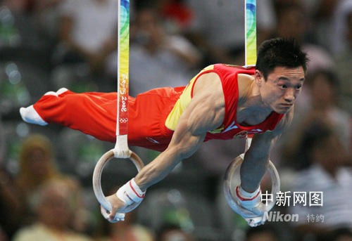 8月18日,中國選手楊威在北京奧運(yùn)會(huì)吊環(huán)決賽中表現(xiàn)出色,奪得銀牌。中新社記者 武仲林 攝