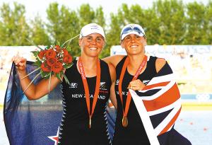 16日,新西蘭雙胞胎姐妹卡羅琳·斯溫德爾和喬治娜·斯溫德爾以0.01秒的微弱優(yōu)勢,驚險(xiǎn)衛(wèi)冕賽艇女子雙人雙槳冠軍。姐妹倆同時(shí)也是該項(xiàng)目世界紀(jì)錄保持者。