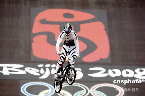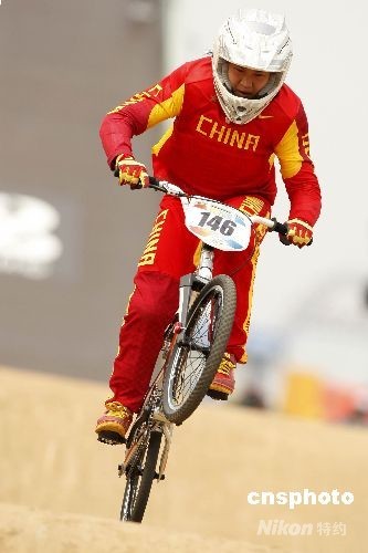 8月20日,北京奧運(yùn)會(huì)小輪車(chē)比賽在老山小輪車(chē)賽場(chǎng)展開(kāi)較量。在女子競(jìng)速計(jì)時(shí)賽的兩輪排位賽中,中國(guó)選手馬麗蕓排在最后一位,被分在了半決賽的第一組。圖為馬麗蕓在比賽中。
