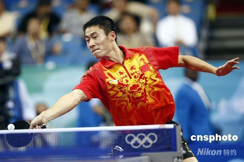 8月21日,北京奧運(yùn)會(huì)乒乓球男子單打第三輪的比賽在北京大學(xué)體育館進(jìn)行,中國(guó)選手王勵(lì)勤4比0戰(zhàn)勝波蘭選手盧希安·布拉什切克,晉級(jí)下一輪比賽。中新社發(fā) 盛佳鵬 攝