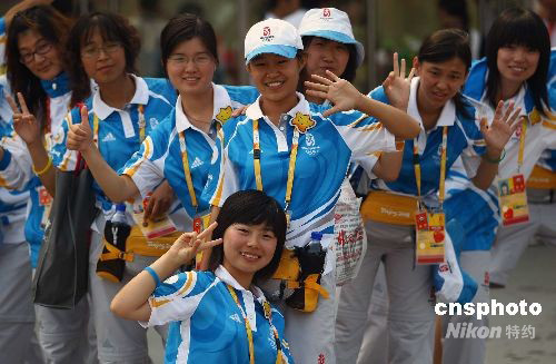 8月24日下午,一群完成奧運(yùn)服務(wù)工作,即將離開奧林匹克公園的年輕志愿者在鳥巢附近合影留念。當(dāng)晚,北京奧運(yùn)會(huì)閉幕式將在國家體育場“鳥巢”舉行。中新社發(fā) 劉新 攝