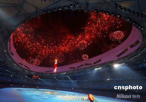 8月24日晚,北京奧運(yùn)會閉幕式在奧林匹克公園內(nèi)的國家體育場“鳥巢”舉行,絢麗的煙花映照“鳥巢”上空。