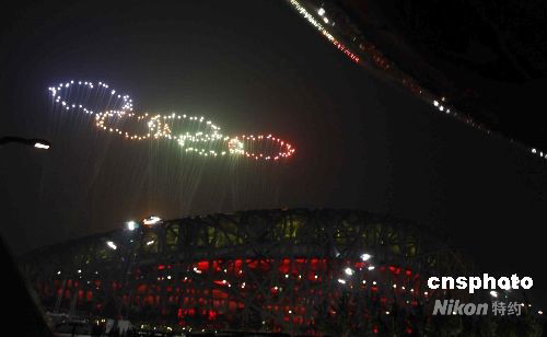 8月24日晚,第二十九屆夏季奧林匹克運(yùn)動會在北京閉幕。閉幕式上燃放的彩色“五環(huán)”焰火獨(dú)特新穎。 中新社發(fā) 盛佳鵬 攝