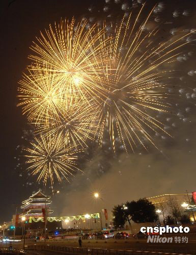 8月24日晚,第29屆夏季奧運(yùn)會(huì)在北京國(guó)家體育場(chǎng)“鳥(niǎo)巢”勝利閉幕。北京天安門(mén)廣場(chǎng)燃放了20分鐘焰火,將正陽(yáng)門(mén)上空照耀得絢麗多彩。中新社發(fā) 鄒憲 攝