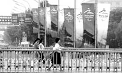 昨天,很多市民發(fā)現(xiàn)大街上的“中國印”旗幟悄然換成了殘奧會的“天地人”旗幟(如圖)。據(jù)悉,近7萬面殘奧會旗幟轉(zhuǎn)換工作將于9月初結(jié)束。