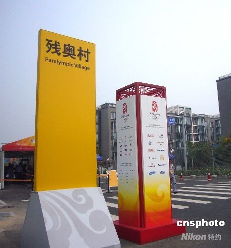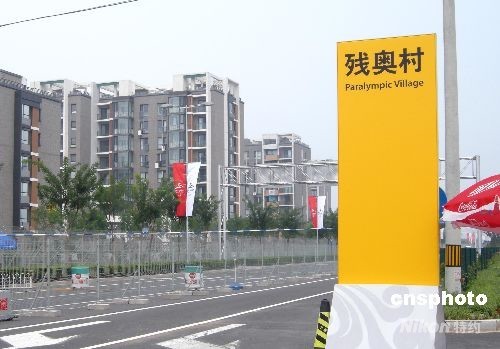 2008年8月28日,第13屆北京殘奧會彩旗在北京殘奧村四周迎風飄揚。當日14時,殘奧村預開村,開始接待北京殘奧會運動員。據(jù)悉,預計將有2000多名殘疾人運動員入住殘奧村。中新社發(fā) 玉龍 攝