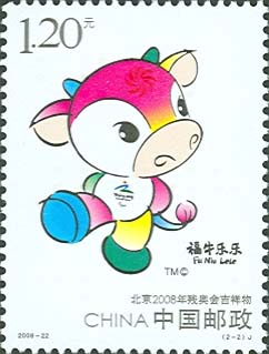 中新網(wǎng)9月4日電 據(jù)國(guó)家郵政局網(wǎng)站消息,國(guó)家郵政局定于2008年9月6日發(fā)行《北京2008年殘奧會(huì)》紀(jì)念郵票1套2枚,志號(hào):2008-22。圖案分別為:北京2008年殘奧會(huì)會(huì)徽和北京2008年殘奧會(huì)吉祥物,面值均為1.20元。