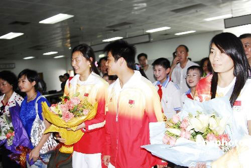 9月4日,剛參加完第29屆奧運(yùn)會(huì)廣東省總結(jié)表彰會(huì)的湛江籍奧運(yùn)冠軍何沖等飛抵湛江,受到湛江市政府和父老鄉(xiāng)親的熱烈歡迎。當(dāng)日上午,何沖母校——湛江市第四小學(xué)、赤坎區(qū)業(yè)余體育學(xué)師生代表和他的親朋好友,到湛江機(jī)場(chǎng)迎接何沖的歸來。同期抵湛江的還有湛江籍北京奧運(yùn)季軍、國家花樣游泳隊(duì)隊(duì)員劉鷗,國家女足運(yùn)動(dòng)員謝彩霞以及湛江籍運(yùn)動(dòng)健兒張小冬和上屆奧運(yùn)冠軍勞麗詩等,他們于當(dāng)天下午參加了湛江市的慶功表彰大會(huì),湛江市授予何沖湛江市勞動(dòng)模范稱號(hào);湛江市總工會(huì)授予劉鷗和謝彩霞“五一勞動(dòng)獎(jiǎng)?wù)隆狈Q號(hào);共青團(tuán)湛江市委授予劉鷗“湛江市模范共青團(tuán)員”稱號(hào),謝彩霞“湛江市模范青年崗位能手”稱號(hào);湛江市婦聯(lián)授予劉鷗和謝彩霞“三八紅旗手”稱號(hào)。中新社發(fā) 李滿青 攝