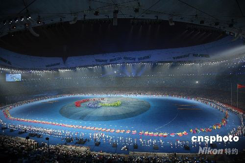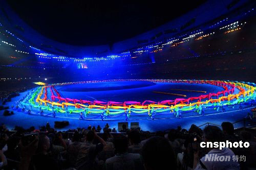 9月6日20時,北京2008年殘奧會開幕式在北京的國家體育場“鳥巢”舉行。 開幕式表演多彩多姿。 中新社發(fā) 盛佳鵬 攝
