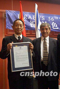 以色列總統(tǒng)卡察夫9日在以色列國會(huì)大廈舉行隆重頒獎(jiǎng)儀式,向中國“雜交水稻之父”袁隆平院士等10位世界頂尖科學(xué)家、藝術(shù)家頒發(fā)有“猶太人諾貝爾獎(jiǎng)”之稱的“沃爾夫”獎(jiǎng)。