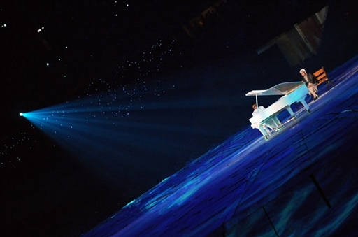 9月6日晚8點,北京2008年殘奧會開幕式在國家體育場“鳥巢”舉行。圖為盲人鋼琴家金元輝在開幕式上進行鋼琴演奏。