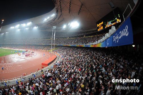 9月9日,數(shù)萬觀眾云集“鳥巢”觀看北京殘奧會田徑比賽。中新社發(fā) 杜洋 攝
