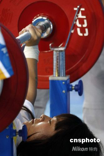 9月9日,北京殘奧會(huì)舉重比賽在北京航空航天大學(xué)體育館展開(kāi)首日的爭(zhēng)奪,在女子40公斤級(jí)的比賽中,烏克蘭選手利季婭-索洛維約娃以100公斤的成績(jī)奪得金牌,此外,她還以105.5公斤的成績(jī)創(chuàng)造了新的殘奧會(huì)紀(jì)錄。中國(guó)選手崔哲奪得銀牌,成績(jī)?yōu)?5公斤,墨西哥選手勞拉-塞雷羅獲得一枚銅牌,成績(jī)?yōu)?2.5公斤。 中新社發(fā) 盛佳鵬 攝