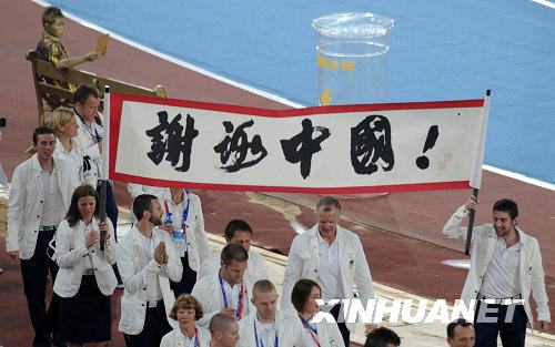 英國代表團舉著“謝謝中國”的橫幅進場。新華社記者 韓傳號 攝