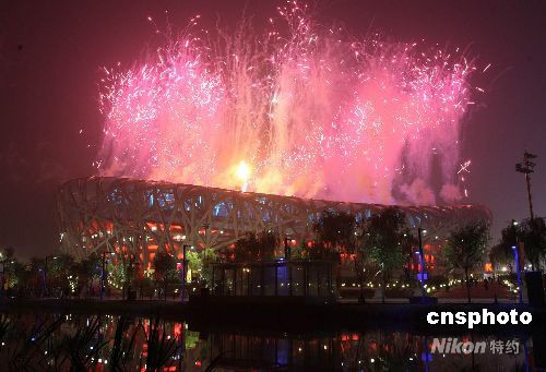 圖:殘奧閉幕式上絢麗焰火映照“鳥(niǎo)巢”(2)