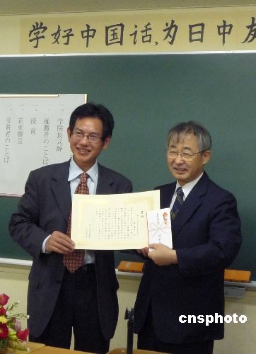 圖:日中學院首次為旅日華人頒發(fā)倉石獎