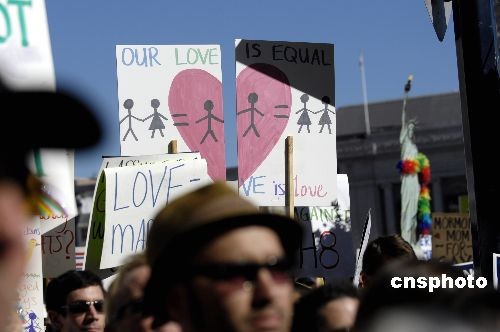 圖:舊金山舉行集會抗議加州通過禁止同性戀結婚提案