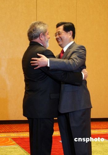 圖:胡錦濤會見巴西總統(tǒng)盧拉