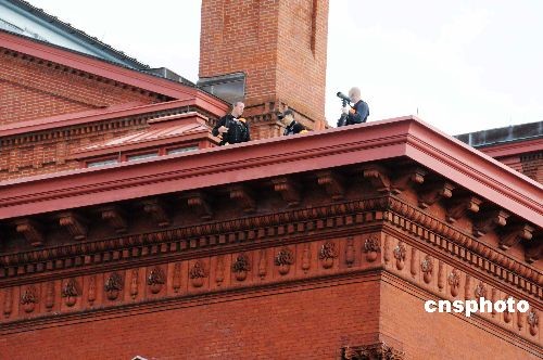 圖:華盛頓金融峰會附近屋頂布滿特警