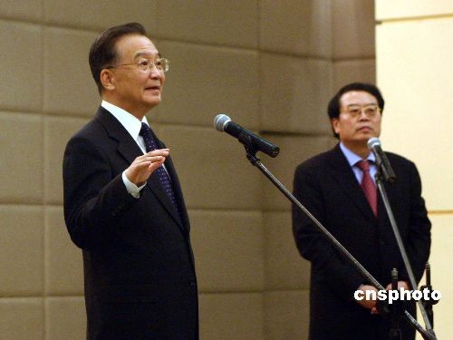 圖:溫家寶與馬西莫夫共同會(huì)見記者