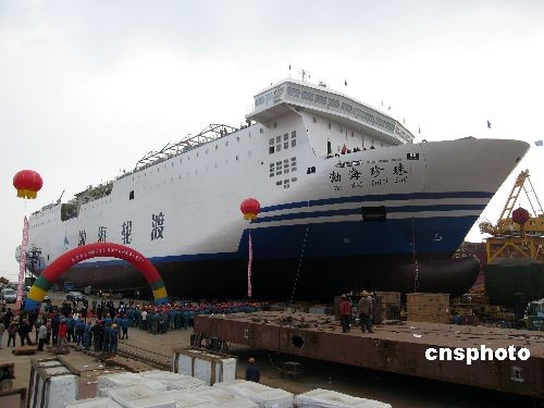 圖:中國(guó)自行設(shè)計(jì)建造的最大客滾船下水