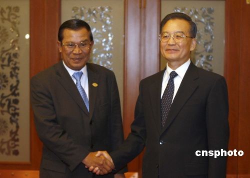 圖:溫家寶會見柬埔寨首相洪森