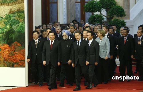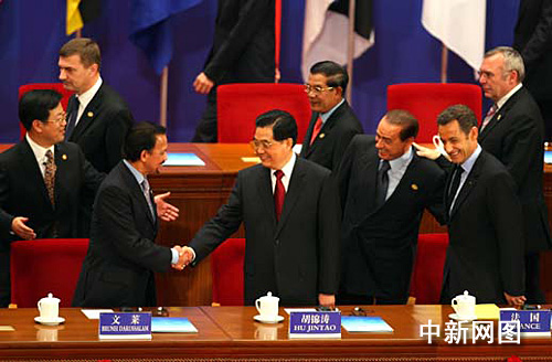 胡錦濤、溫家寶與出席亞歐首腦會議各國領(lǐng)導(dǎo)人合影