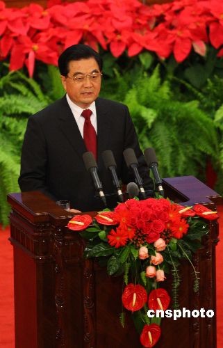 圖:胡錦濤與日本首相麻生太郎出席招待會